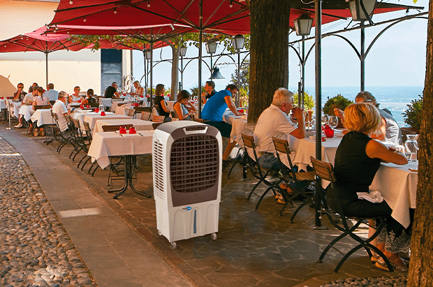 Heureusement, il existe un système permettant de rafraîchir les espaces commerciaux – même à l’extérieur – sans gaspillage et avec une faible consommation. Description du rafraîchisseur à eau et de son fonctionnement.