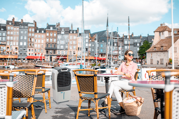 → Écologiques et durables. Nos rafraîchisseurs à eau sont une source d’air frais et propre. Ils n’utilisent pas de gaz réfrigérants (contrairement aux climatiseurs conventionnels) et, grâce à leur faible consommation d’électricité, ils contribuent à réduire l’utilisation de combustibles fossiles et les émissions de CO2, réduisant ainsi leur impact sur l’environnement.