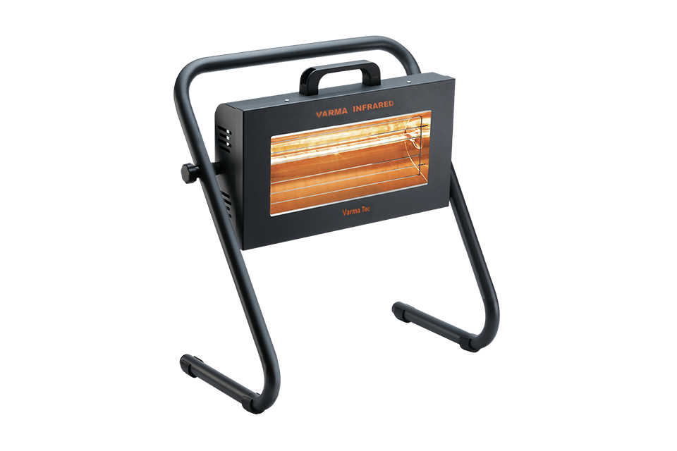 Chauffages à rayons infrarouges pivotants avec support au sol, idéaux pour chauffer les postes de travail et les processus industriels. Ils peuvent être placés dans les coins ou près des murs.