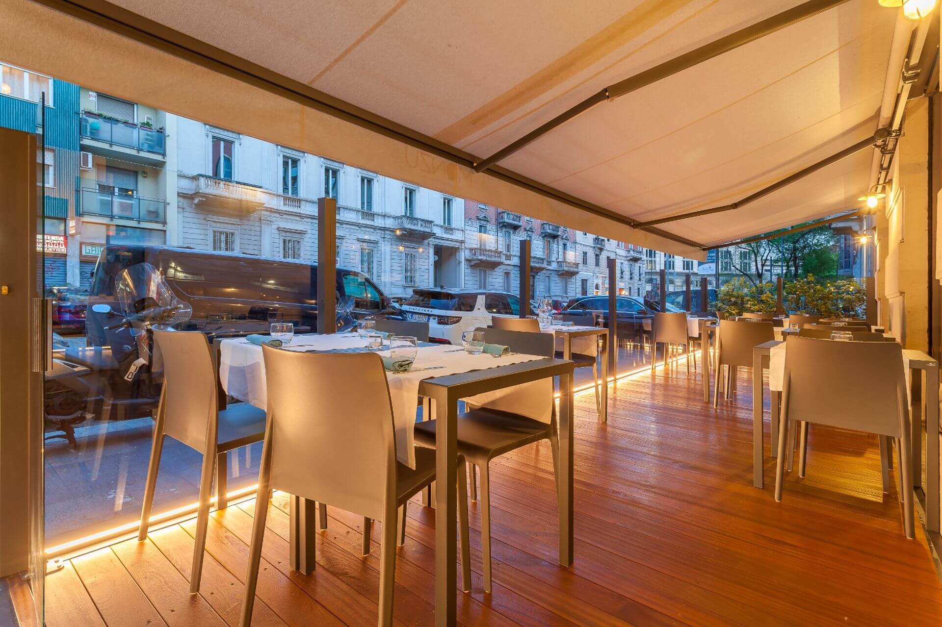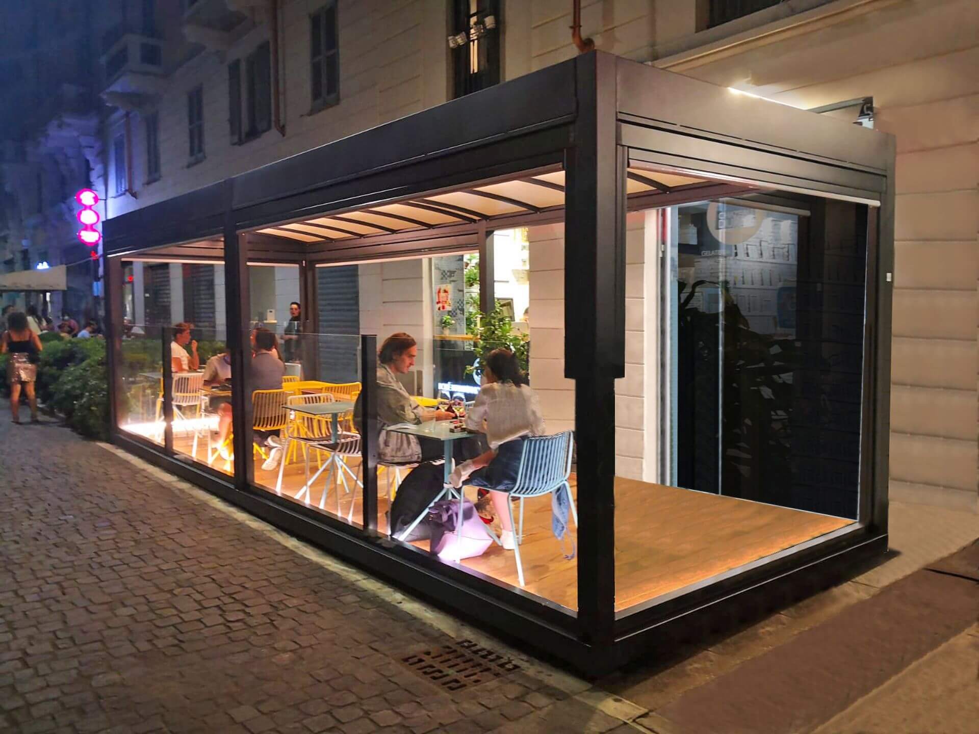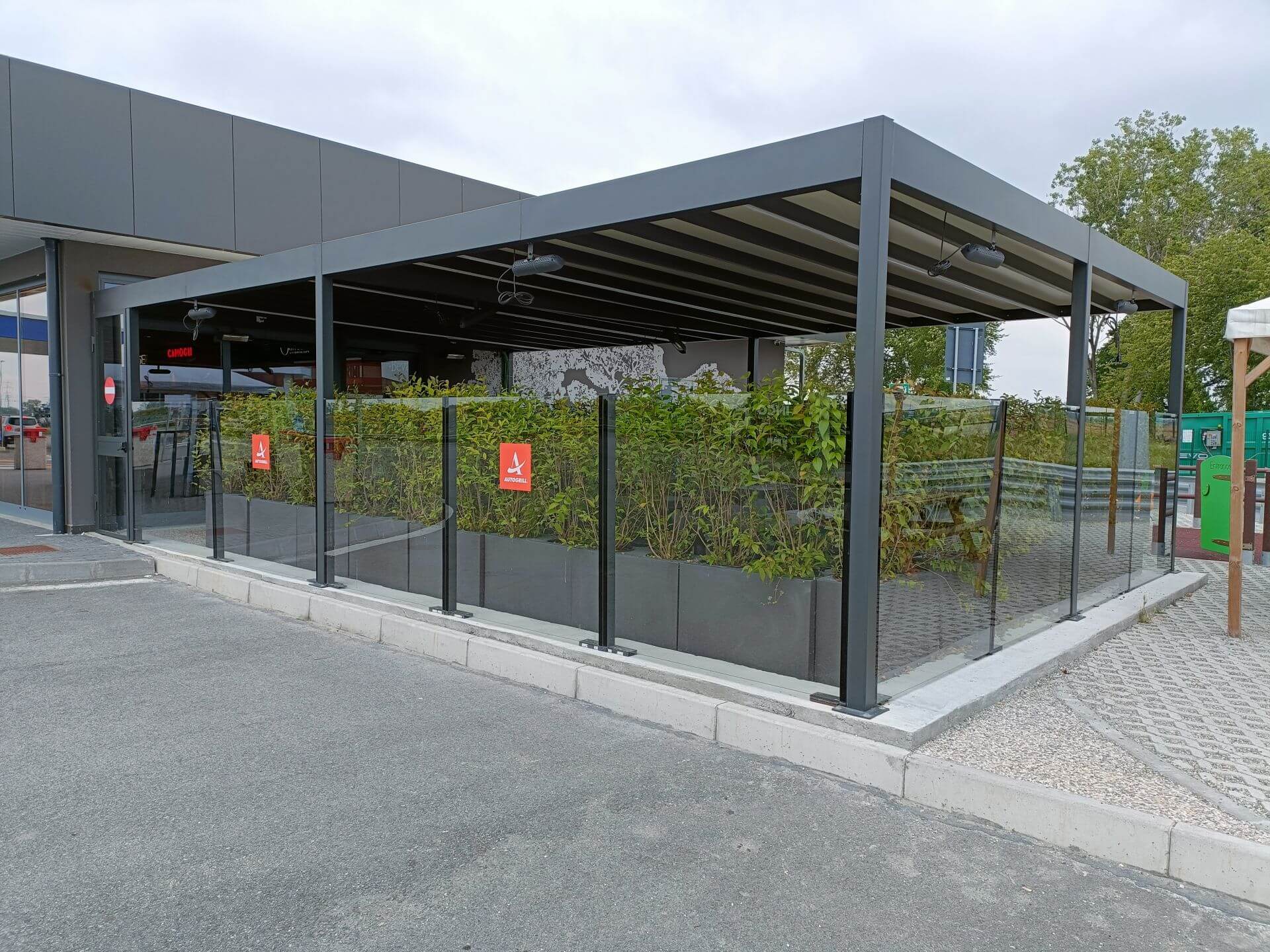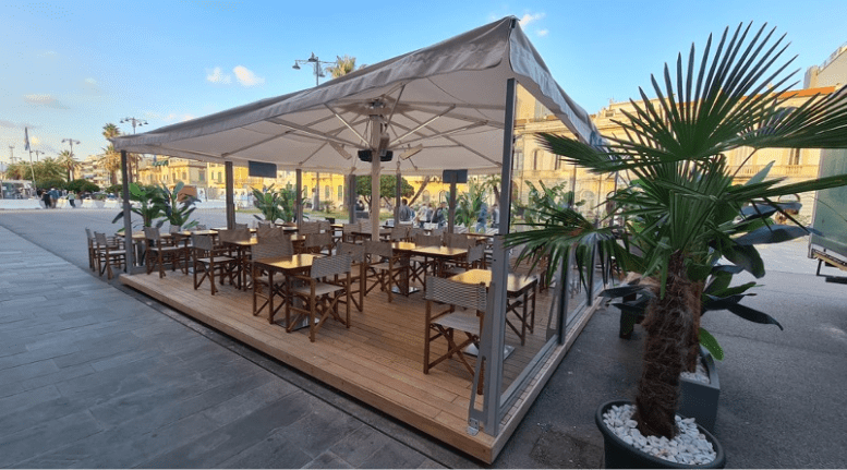 Structure modulaire toute vitrée à fixer au sol Hauteur réglable électriquement par télécommande Brevet Star Progetti Hauteur totale du module 250 cm Hauteur totale du module 180 cm Largeur des modules : Vitre de sécurité inférieure feuilletée 3 + 3 mm Vitre de sécurité supérieure trempée de 6 mm d’épaisseur Module de porte à 2 vantaux disponible Possibilité d’intégrer un éclairage LED Hauteur réglable à 180 cm ou 220 cm, sans butée intermédiaire, grâce à un mécanisme servo-assisté (brevet Star Progetti) Hauteur totale du module 220 cm Hauteur totale du module 180 cm Largeur des modules : Vitre de sécurité inférieure feuilletée 3 + 3 mm module de porte à 2 vantaux disponible Possibilité d’intégrer un éclairage LED 2 coloris standard Blanc Gris fer micacé RAL a scelta Autres coloris RAL à la demande avec référence spécifique au nuancier RAL ÉCLAIRAGE LED MODULE DE BANC MODULE DE PORTE Technologies de chauffage, solutions de rafraîchissement et confort dans tous les types d’environnements. Nous connaissons très bien le secteur horeca et ses besoins. Depuis plus de 30 ans, nous aidons les opérateurs à développer leurs activités et sommes fiers de pouvoir affirmer que nous avons changé la façon dont les gens vivent les espaces extérieurs tout au long de l’année. La prise de conscience n’est que le premier pas. Nous sommes convaincus que toute production technologique comporte des responsabilités environnementales auxquelles il est impossible de se soustraire. Explorez librement les détails de notre technologie. TOTAL VISION Electric
