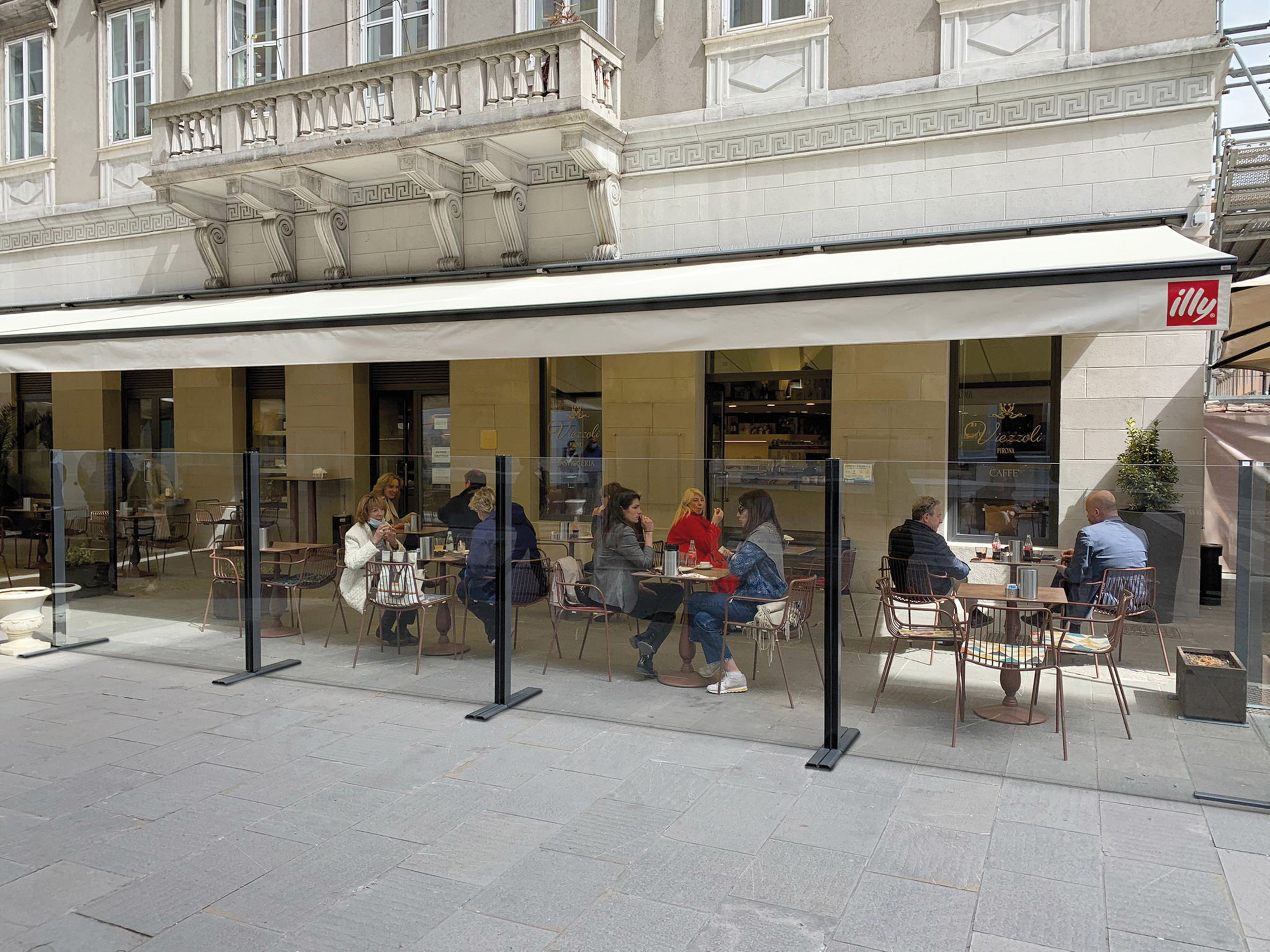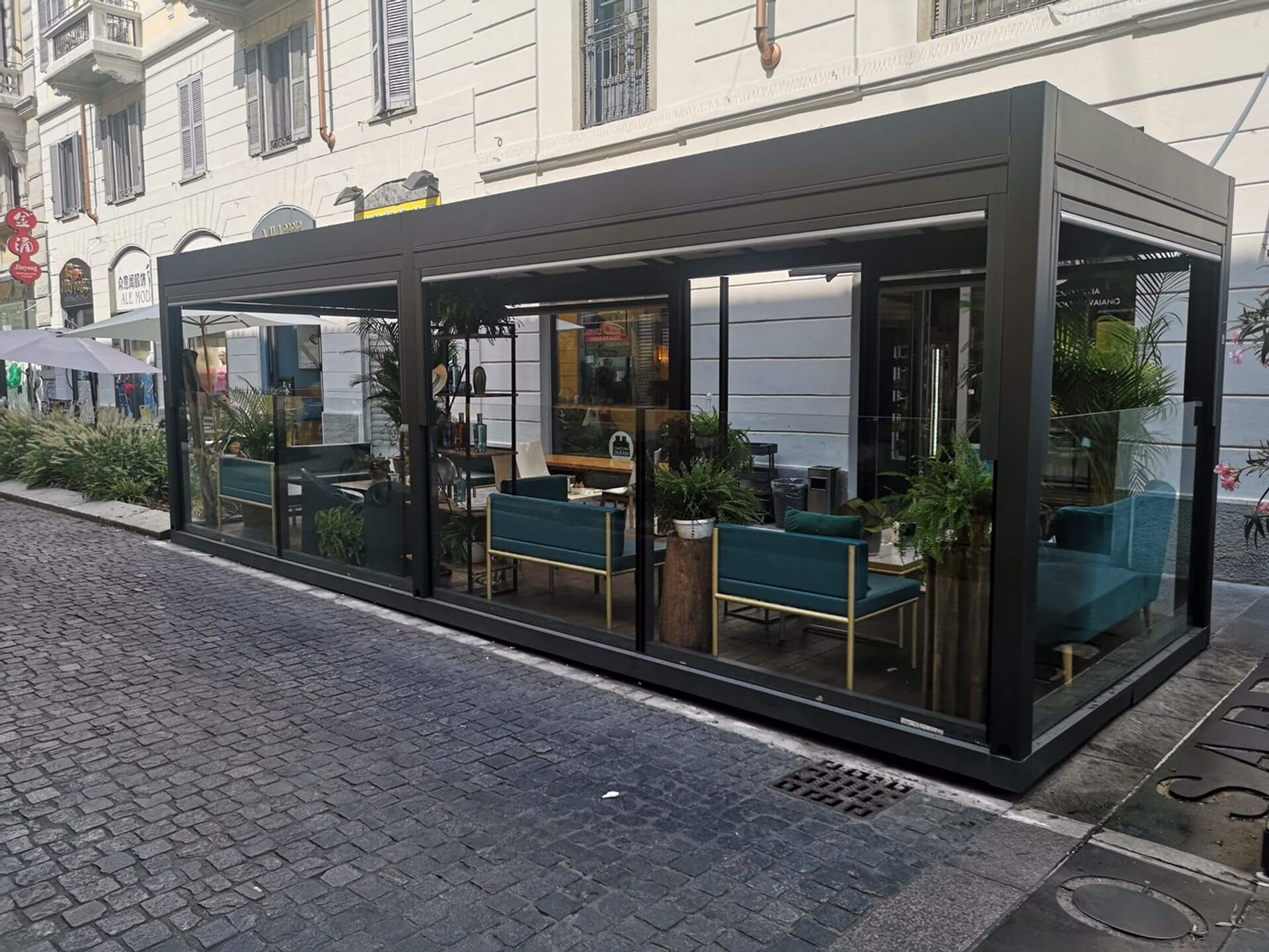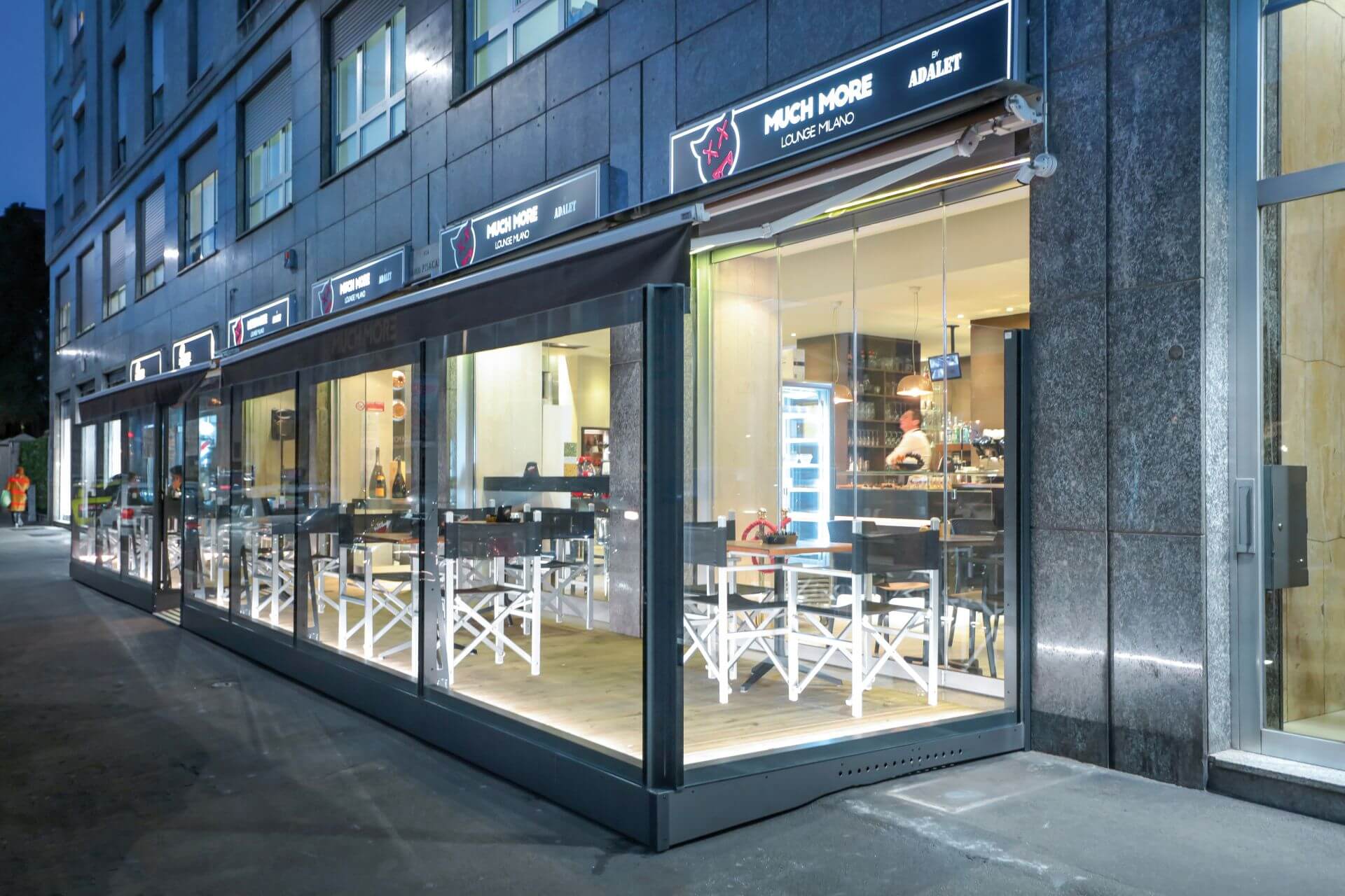 Structure modulaire toute vitrée à fixer au sol Hauteur réglable électriquement par télécommande Brevet Star Progetti Hauteur totale du module 250 cm Hauteur totale du module 180 cm Largeur des modules : Vitre de sécurité inférieure feuilletée 3 + 3 mm Vitre de sécurité supérieure trempée de 6 mm d’épaisseur Module de porte à 2 vantaux disponible Possibilité d’intégrer un éclairage LED Hauteur réglable à 180 cm ou 220 cm, sans butée intermédiaire, grâce à un mécanisme servo-assisté (brevet Star Progetti) Hauteur totale du module 220 cm Hauteur totale du module 180 cm Largeur des modules : Vitre de sécurité inférieure feuilletée 3 + 3 mm module de porte à 2 vantaux disponible Possibilité d’intégrer un éclairage LED 2 coloris standard Blanc Gris fer micacé RAL a scelta Autres coloris RAL à la demande avec référence spécifique au nuancier RAL ÉCLAIRAGE LED MODULE DE BANC MODULE DE PORTE Technologies de chauffage, solutions de rafraîchissement et confort dans tous les types d’environnements. Nous connaissons très bien le secteur horeca et ses besoins. Depuis plus de 30 ans, nous aidons les opérateurs à développer leurs activités et sommes fiers de pouvoir affirmer que nous avons changé la façon dont les gens vivent les espaces extérieurs tout au long de l’année. La prise de conscience n’est que le premier pas. Nous sommes convaincus que toute production technologique comporte des responsabilités environnementales auxquelles il est impossible de se soustraire. Explorez librement les détails de notre technologie. TOTAL VISION Electric