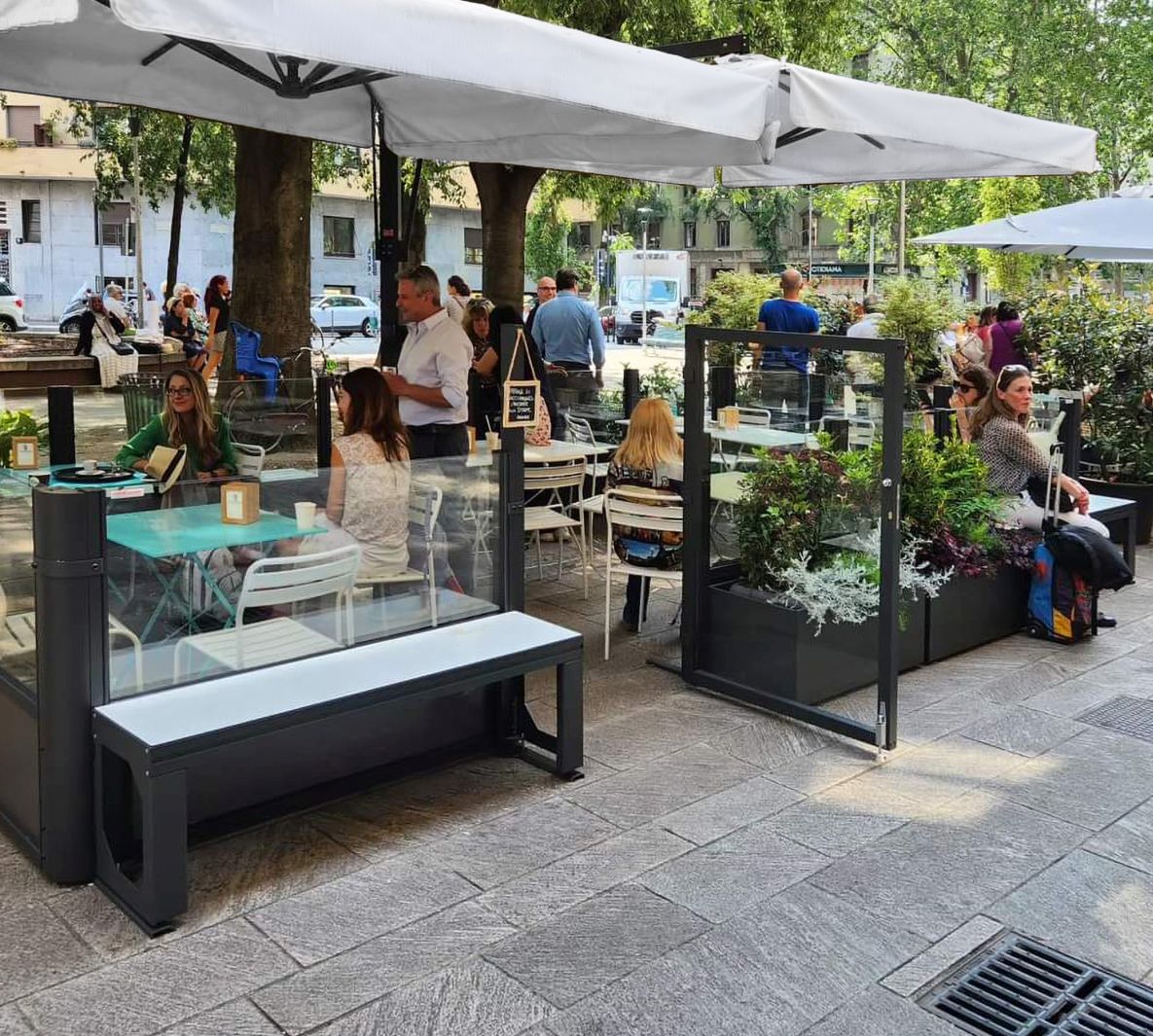 Les modules peuvent être équipés de jardinières ou de bancs.