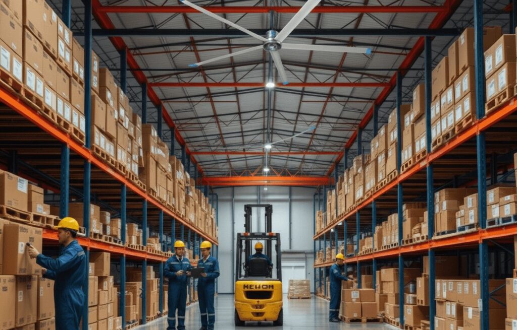 La solution idéale pour créer du confort en ventilant l’air à l’intérieur de grands espaces (hangars, entrepôts, installations logistiques, etc.) ou à l’extérieur lorsque les températures deviennent caniculaires.