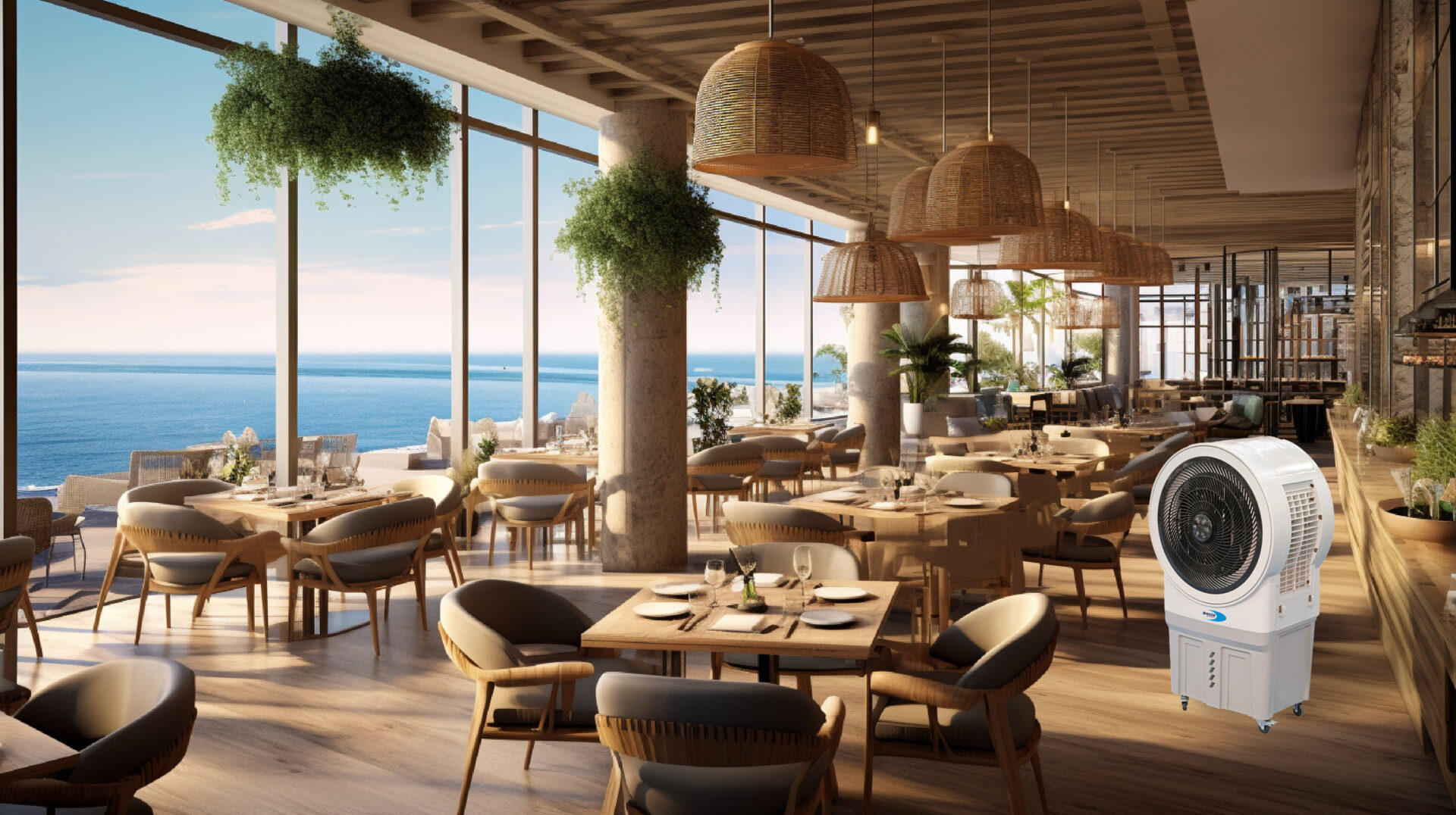 Le rafraîchissement par évaporation est un système naturel qui permet de rafraîchir les espaces de manière efficace et durable. Il peut aussi être utilisé avec des fenêtres ouvertes, dans de grandes pièces et à l’extérieur.
