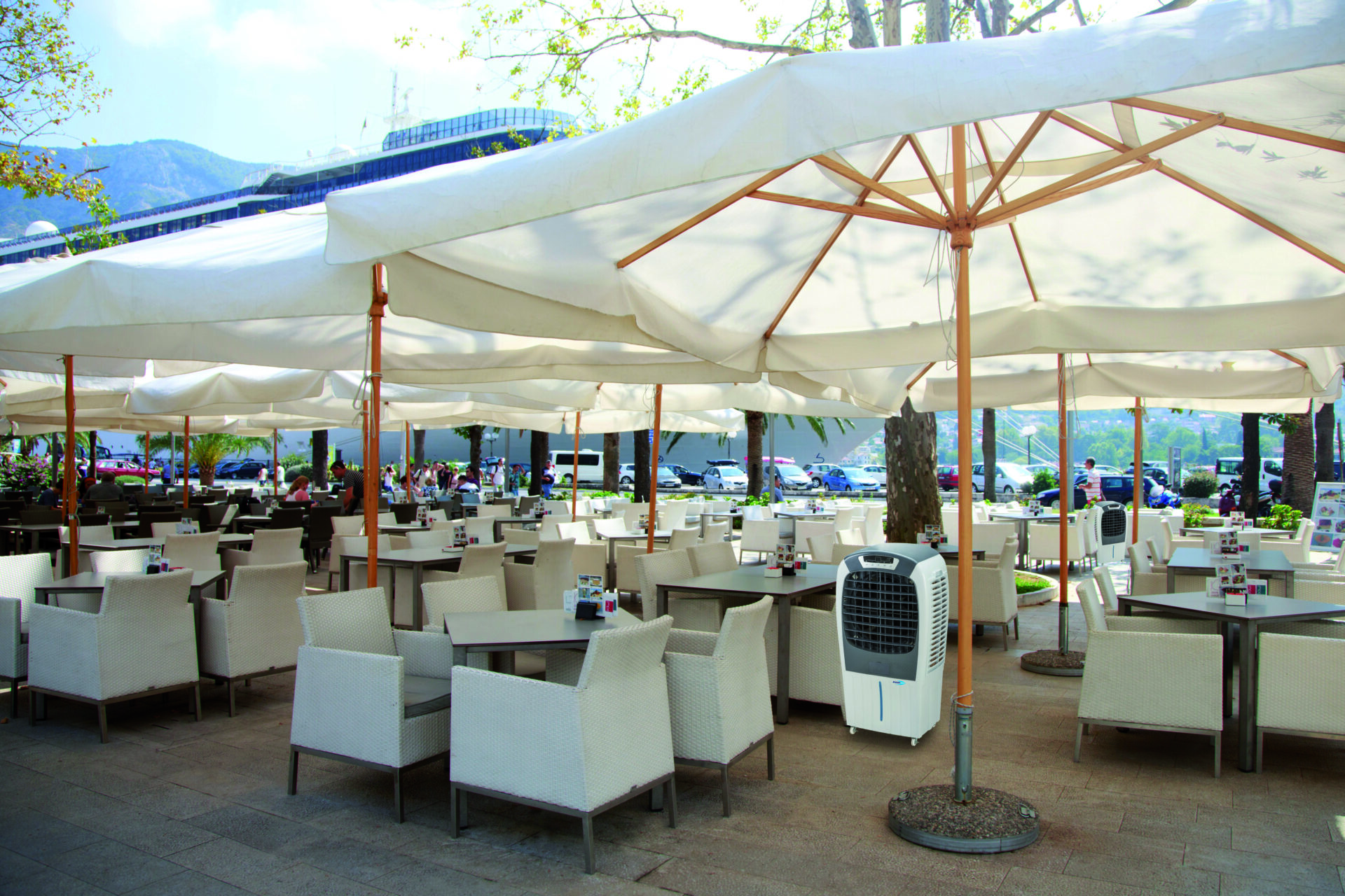 Pour rafraîchir les espaces ouverts ou semi-ouverts en localisant la fraîcheur dans les zones nécessaires, avec un maximum d’efficacité et d’économies d’énergie. La solution ultime pour rafraîchir les espaces sous les tentes, les voiles, les parasols et les terrasses de bars et de restaurants.