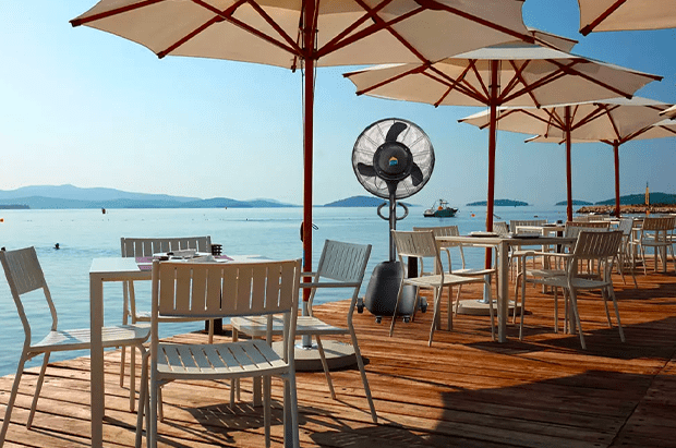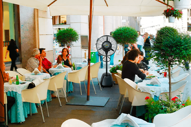 Le rafraîchissement par évaporation est un système naturel qui permet de rafraîchir les espaces de manière efficace et durable. Il peut aussi être utilisé avec des fenêtres ouvertes, dans de grandes pièces et à l’extérieur.