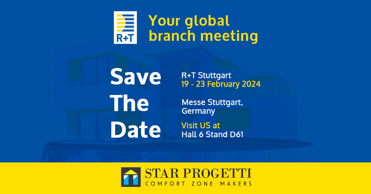 Nous serons présents au salon R+T de Stuttgart, l’un des événements internationaux les plus importants dans le secteur des volets roulants/porte et des systèmes de protection solaire.